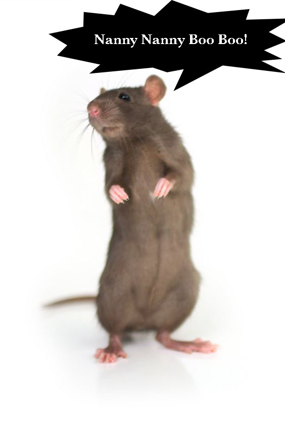 “Nanny nanny boo boo!” The little punk taunts me as he raises up on his hind legs. I chase him across the garage, and he ducks into a wooden box. I peer into a hole, glowering at the scoundrel.